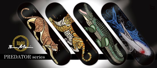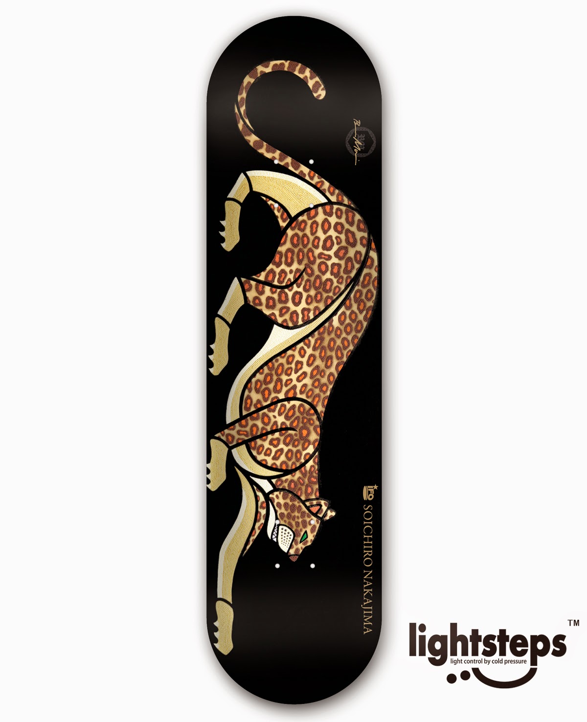 今回もBen Moriらしいインパクトのあるデザインが登場。肉食動物たちがベンのデザインに書き下ろされる。デザイナー森英恵を祖母に、ファッション界に深いかかわりを持つ環境に育ち、独自の世界観が人気のBen Moriデザイン。 IFOの中ではベーシックモデルとなる「light steps」。カナディアンメープルの中でも堅い部分を100%使用し、通常のHOT PRESSURE製法ではなくCOLD PRESSURE製法を採用することにより、板の軽量、そして反発力を高め、より軽いデッキコントロールを可能としました。
