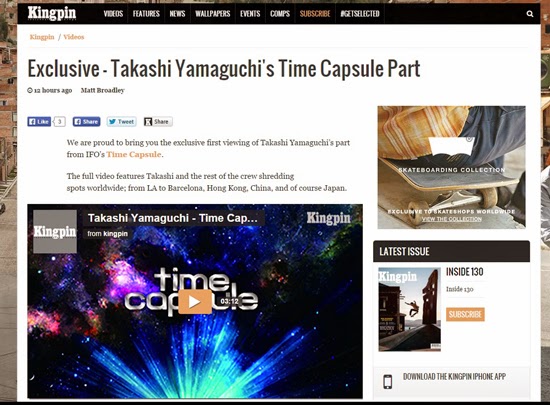 iTunes storeでの発売も開始されたIFO SKATEBOARD presents “Time Capsule”の山口隆志のパートが、ヨーロッパ最大のスケートメディア「KINGPIN」よりexclusiveとして公開されました。