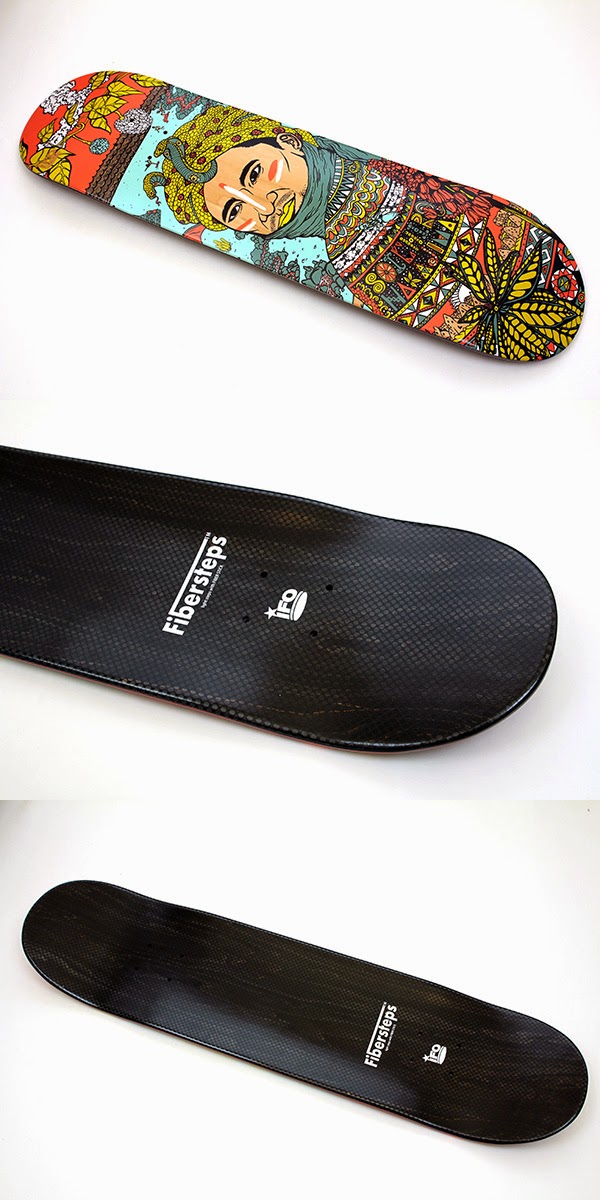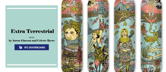 最近THRASHERなどでも取り上げられ、さらに飛躍する海外アーティスト、Aaron Glasson &Celeste Byersによるコラボレート作品が、デッキのグラフィックになりました。 各プロライダーの似顔絵も混じる独特な世界観はさすがの一言! Fiber Stepsを使用した、最先端のテクノロジーデッキになります。 <FIBER STEPS> IFOから新たな新素材デッキの発売です。 厳選されたカナディアンメープルを100%使用し、コールドプレス製法で作られた「Light Steps」のデッキ中心のプライ中央部分4cm幅でノーズからテールの先まで、グラスファイバーが施され、今まで以上に強度を生むことができました。 また、デッキの厚さも従来品よりも薄く加工し、軽量化を実現しました。 ノーズ/テールの先端まで組み込まれたファイバーにより、叩いた力がダイレクトに伝わりより高い反発力を生み出します。